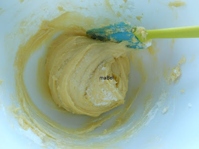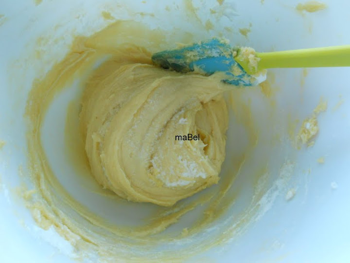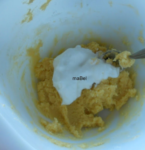 ahora ya colocamos el resto de claras, y es cuando mas cuidado tenemos de mezclar, para que la mezcla nos quede espumosa, siempre de forma envolvente