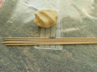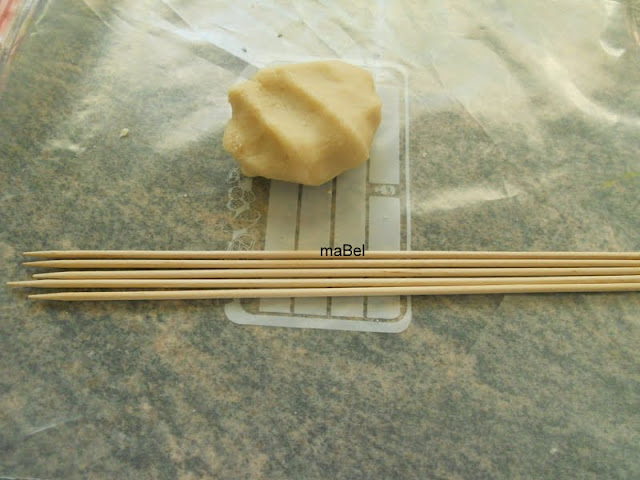 Voy a usar 50 gr de mazapan, y tambien necesito palillos de brochette de madera (unos 10)
