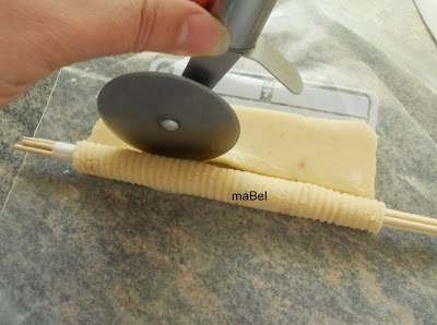 Luego hago rodar el rollito con las dos manos para afinarlo y hacerlo largo