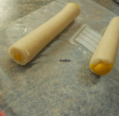 Para el relleno voy a usar 50 gr de mazapan y 1 yema de huevo