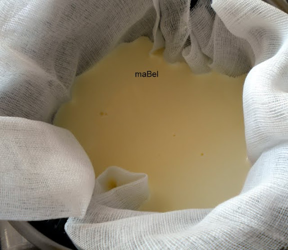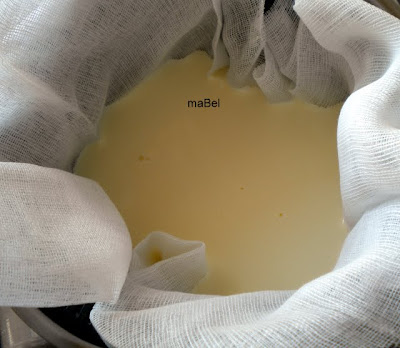 Ponemos a calentar , 600 gr de nata o crema de leche para batir (35%) hasta que pones el dedo y te quemas un poco, le incorporamos 2 cdas de zumo de limón. Lo dejamos enfriar, vamos a ver que espesa, y lo pasamos a traves de una gasa, para drenar el exceso de liquido
