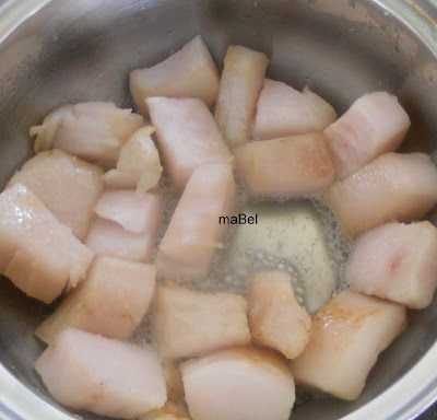 lo coloco en una cacerolita y lo ponemos a fuego muy suave. No tiene que freir, sino derretirse muy lentamente, cada tanto vamos moviendo los cubos de grasa para que el calor le llegue a todos lados