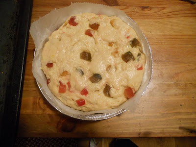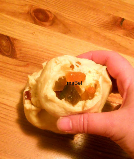 La mía llevaba entre las frutas escarchadas pera y aconsejo no ponerla, salvo que guste mucho la pera, porque el sabor y la pastosidad desluce el crujiente y agradable contanto y sabor del resto de las frutas escarchadas.