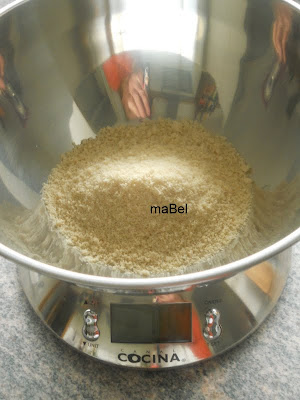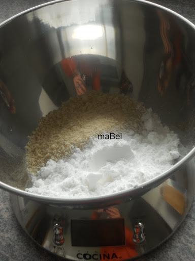 43. Carla, tendrias que usar almendras, muele las almendras junto con el axucar glas, con un procesador. Lo conveniente es procesar de a poco, para que no se caliente y no suelte aceite las almendras, y quede suelto. Se podria tostar un poco en el horno antes para perder humedad