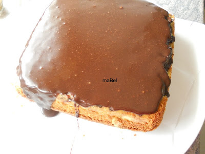 Yo quise adornar un poco mas, y como tenia 50 gr de chocolate, entonces calenté 50 gr de nata, y disolví el chocolate en ella, hice una ganache, y se la coloque encima