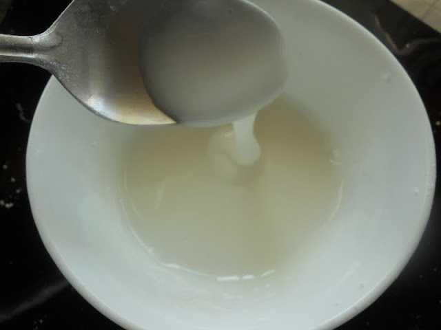 Otra cosa que vamos a usar es la glasa, pon 5 cdas de azúcar glase o impalpable, y le vas agregando poco a poco agua, hasta que quede como una miel blanca