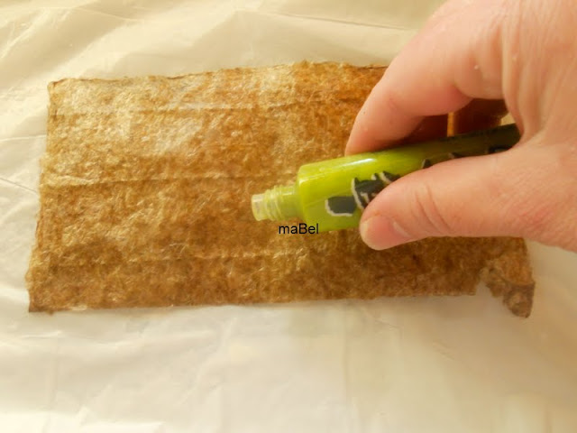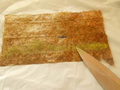 a la hoja le colocamos un poco de wasabi, que es una pasta picante hecha de rábano, y lo extendemos, ojo porque pica mucho!