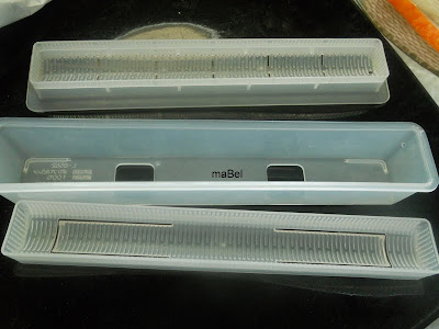 Ahora les voy a mostrar el utensilio de plástico, consta de 3 partes, un soporte con unos huecos grandes, un moldecito interior y una tapa que sirve de molde exterior