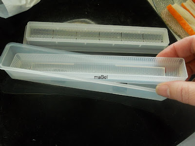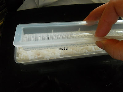 este es el moldecito interior, como ves, tiene como dos ranuras como si fuesen unas pestañas, eso nos va a ayudar despues a despegar el sushi del molde.... ya te explicaré