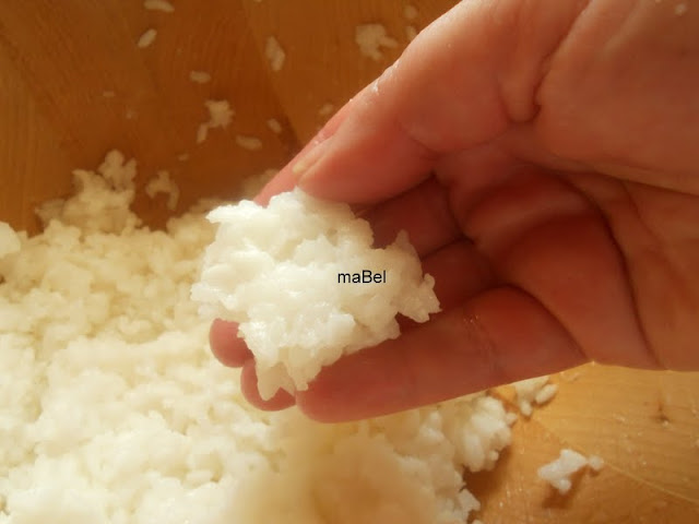 Truco: Te cuento cómo lo hago cuando no tengo el arroz para sushi... lo hago con el arroz redondo ( tambien el carnaroli va bien) el que usamos para paella, que es cortito y gordito, y lo hiervo con doble cantidad de agua, o sea por 1 taza de arroz van 2 tazas de agua que ya esta hirviendo en el fuego. Lo hiervo 15 minutos, si va necesitando un poquito mas de agua le voy agregando. En ese momento le pongo 1 cda de harina de arroz, si no tienes ponle 1/2 cda de maizena, mezcla todo, lo tapo y dejo ahi solito unos 5 minutos mas, para que se pegotee todo.