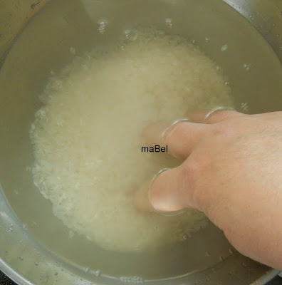 cubres con otra capa de arroz, acuérdate de que esté suelto, y usa la mano mojada... lo de la cucharilla es para la foto...