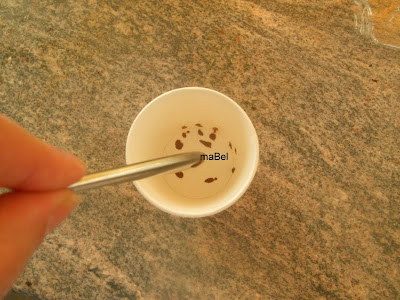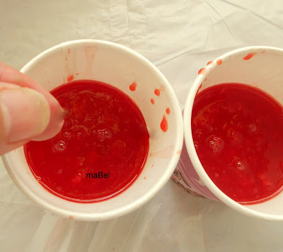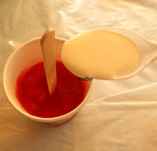 En un vasito descartable de los de café, también hacemos puntitos, hasta la mitad del vasito, donde iría la parte roja del helado