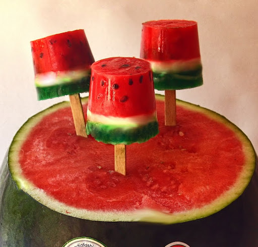 Este helado se hace con la pulpa de la sandía, simplemente es procesarla y ponerla a congelar con un palito, si no tienes de los de helado, improvisa con uno de brochette, pero quítale la punta para no pincharte después. Otra forma es usar una pajita de las bebidas, que sea gruesita.