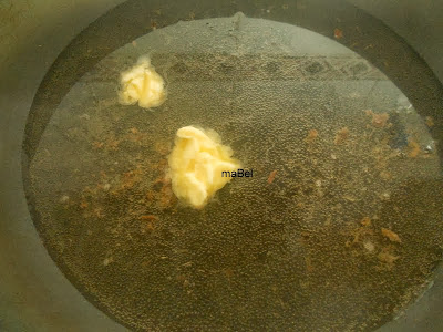 Sobre el agua, agregamos una buena cucharada de mantequilla fria.
