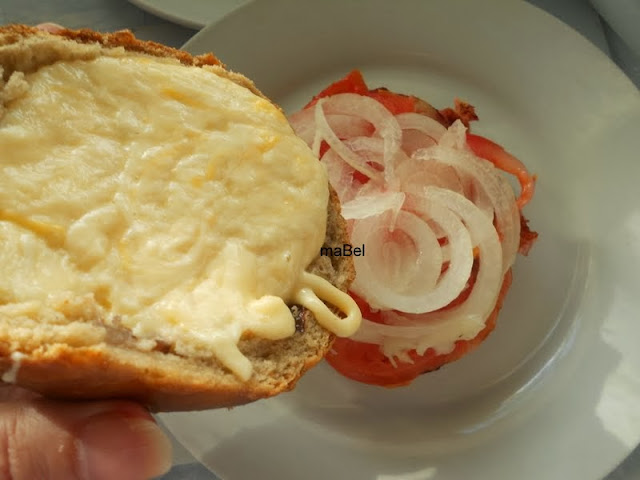 y cubrimos el pan que ya tiene la carne, el tomate, y demas acompañamientos