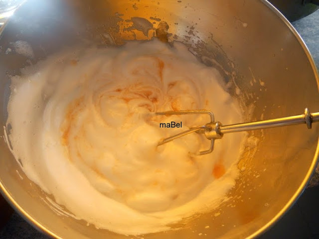 Por otro lado, batimos la clara, y cuando forme espuma, le vamos agregando en forma de lluvia, las 3 cdas de azúcar, poco a poco mientras seguimos batiendo, para que se forme un merengue
