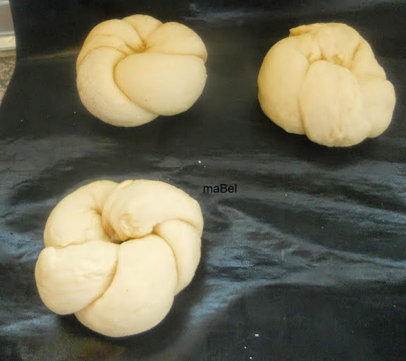 Para armar, estiramos la bola de masa de forma alargada, la cerramos como muestra en las fotos y hacemos un rollito de 30 cm mas o menos, el grosor, queda como el de un dedo. Si no lo entiendes, mira el video que puse antes, donde muestro cómo lo hago
